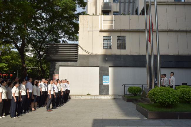 伴随着雄壮激昂的《义勇军进行曲》奏响,升旗手迎风振臂一挥,鲜艳的五星红旗冉冉升起,总部全体人员面对庄严的国旗行注目礼,高声奏唱国歌,深情向祖国告白,决心以昂扬的斗志和积极进取的精神投入工作,为集团顺利实现年度经济目标贡献力量!