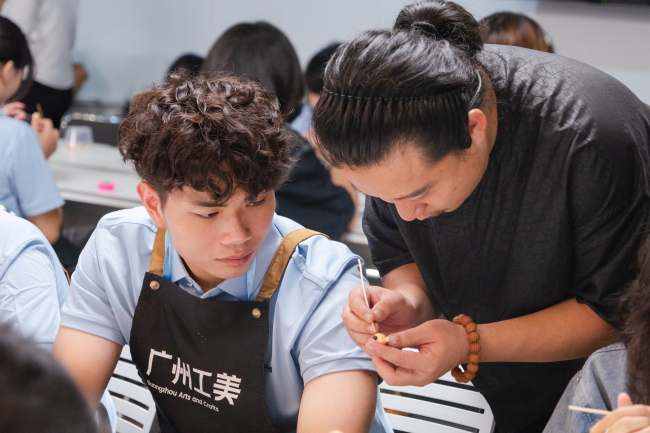 8月中下旬,大新公司与来自两岸高校及贵州地区200余名青年代表,相继开展非遗面塑与广彩书签体验活动。面塑课堂上,非遗传承人从技艺源流切入,将文化故事融入技法教学,引导青年学子亲手塑造中国古代神话人物,使台湾地区青年在指尖揉捏间切身感受岭南文化的细腻与温度,巩固“两岸一家亲”的情感联结。广彩体验环节,粤黔青少年从釉料调配到纹样绘制全程协作,切实体现“同上一堂课”的活动宗旨,显著提升岭南传统工艺在年轻群体中的感染力与传播效能。